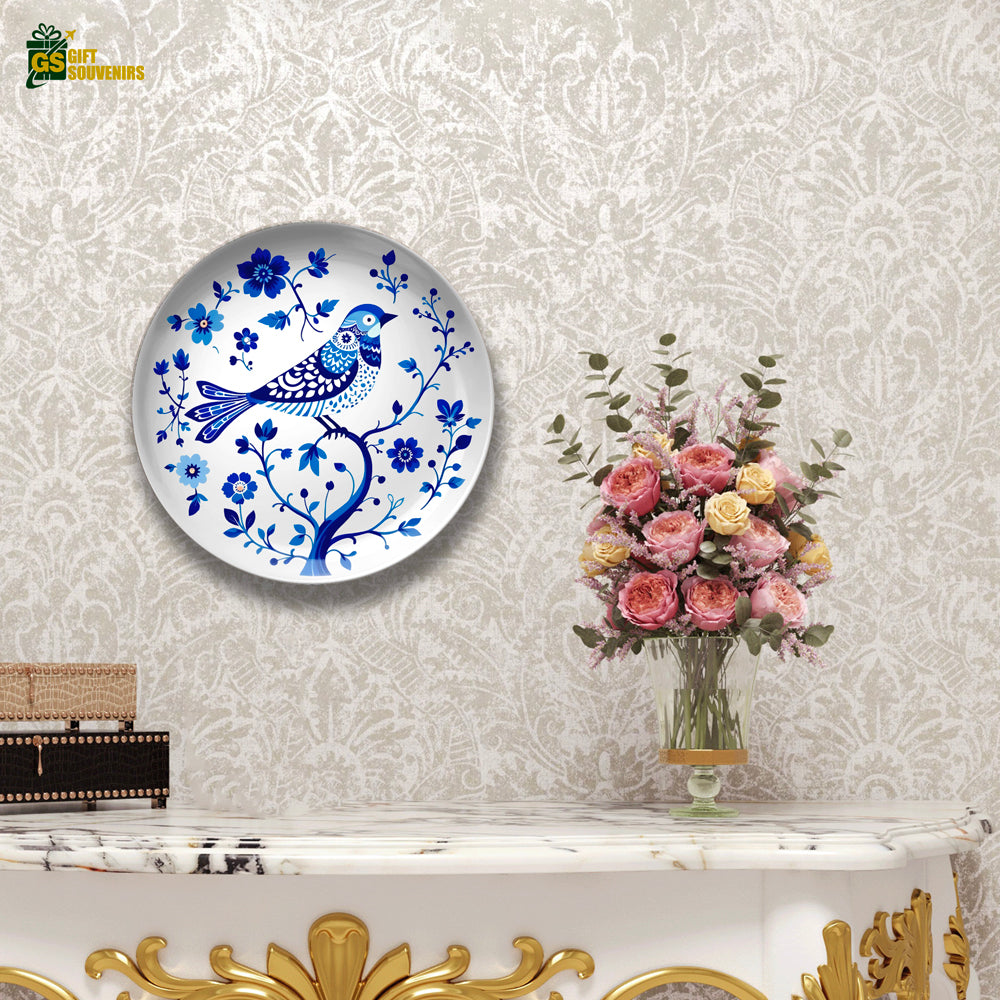 Azure Harmony – Nature-Inspired Bird Ceramic Art Plate